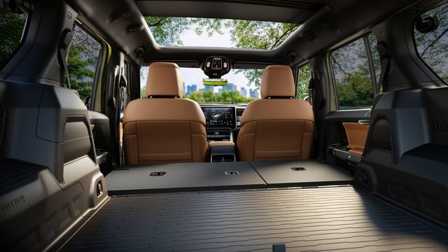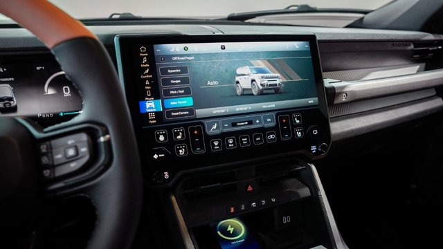 Pour affronter les terrains difficiles, le Recon est équipé de demi-arbres renforcés, de joints CV robustes et d’une batterie de 100 kWh protégée par des boucliers en acier à haute résistance.